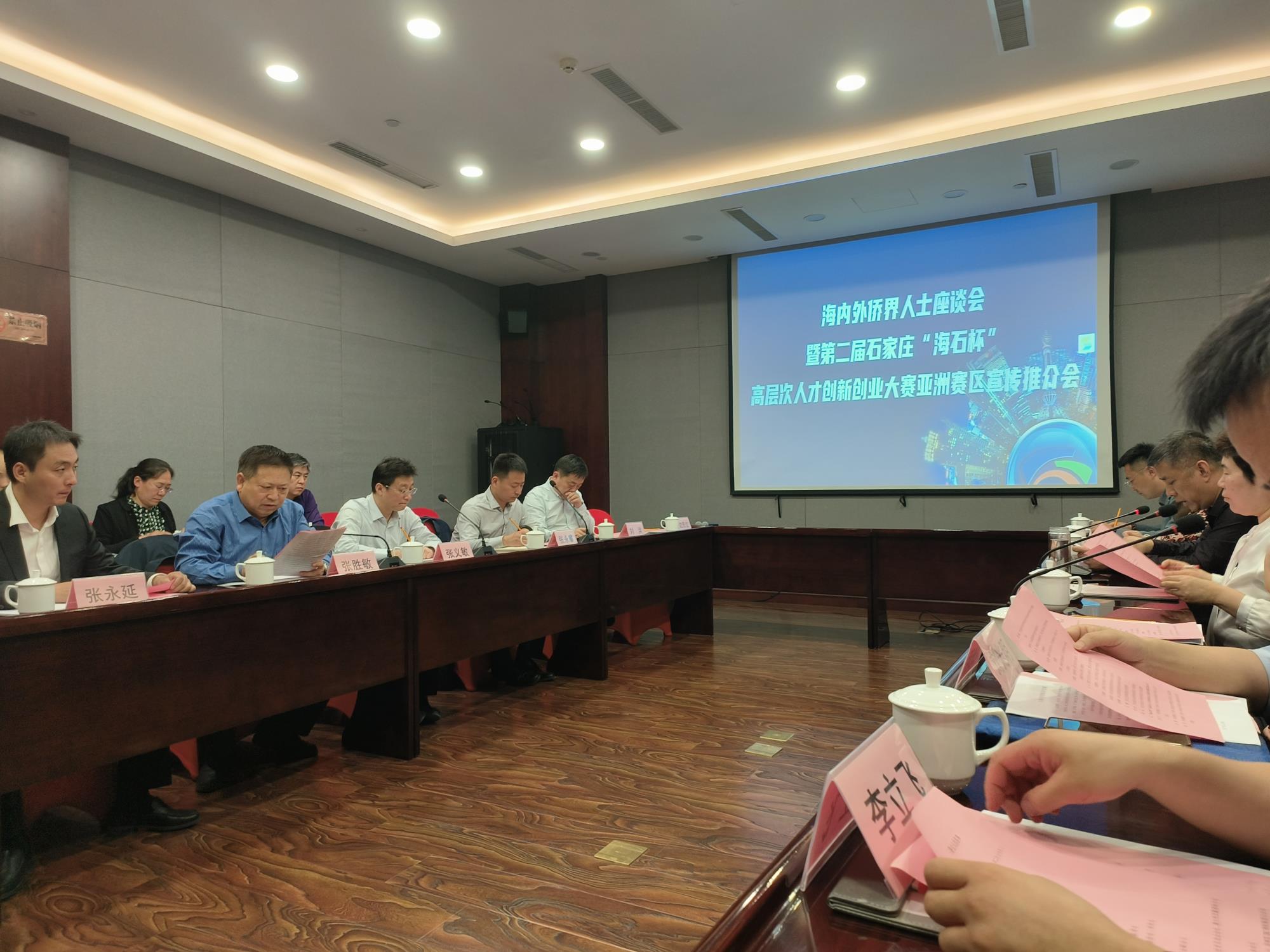 座谈会上,与会人员观看了石家庄市宣传片,省贸促会、市贸促会和市投资促进局分别介绍了省、市外贸工作情况及石家庄市情况概况和产业政策等,“海石杯”大赛亚洲赛区协办单位(同道猎聘集团)对亚洲赛区参赛要求及报名流程进行讲解,并向与会人员发放了石家庄“海石杯”高层次人才创新创业大赛及石家庄人才政策宣传册。
