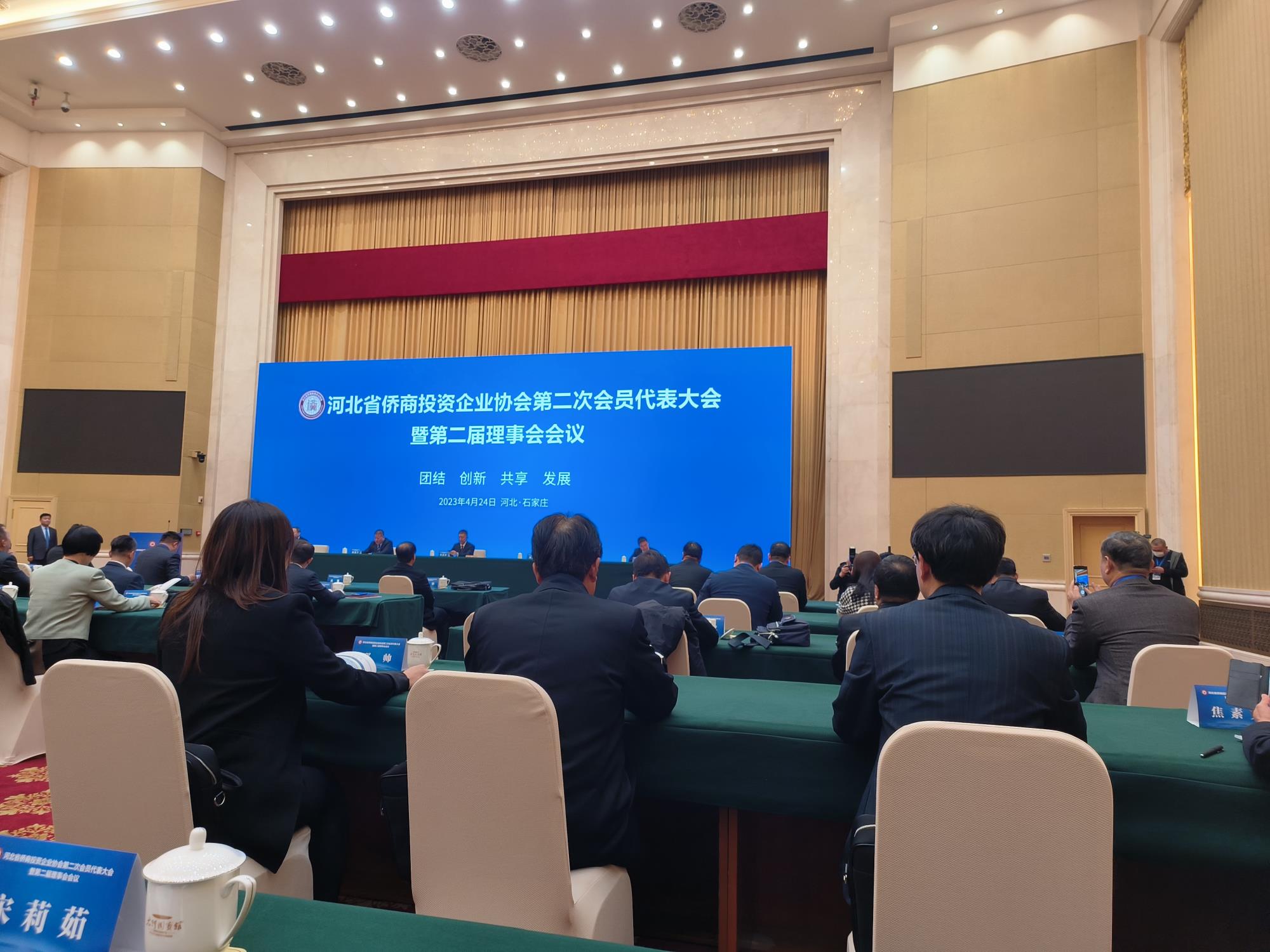 4月24日,河北省侨商会在石家庄太行国宾馆举办第二次会员代表大会暨第二届理事会会议,河北省委常委、统战部部长夏延军看望侨商代表并合影留念,副部长赵明远出席会议并讲话。我会会长张胜敏参加此次会议。